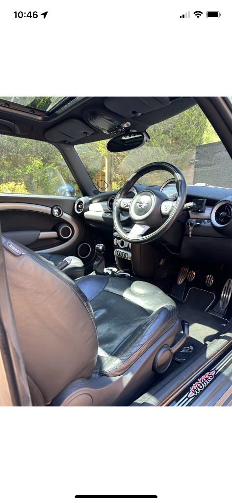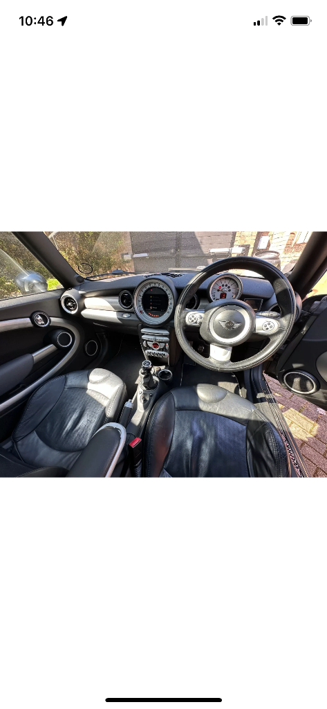 Mini Cooper s John cooper works , has a few paint chips due to age , runs excellent, full service history, loads of bills of repaired items . Full leather heated seats , panoramic roof, sat nav , all extras . Engine management light on . £1500 no offers at all