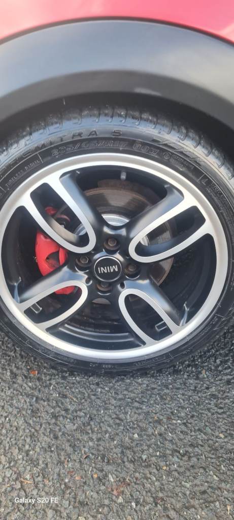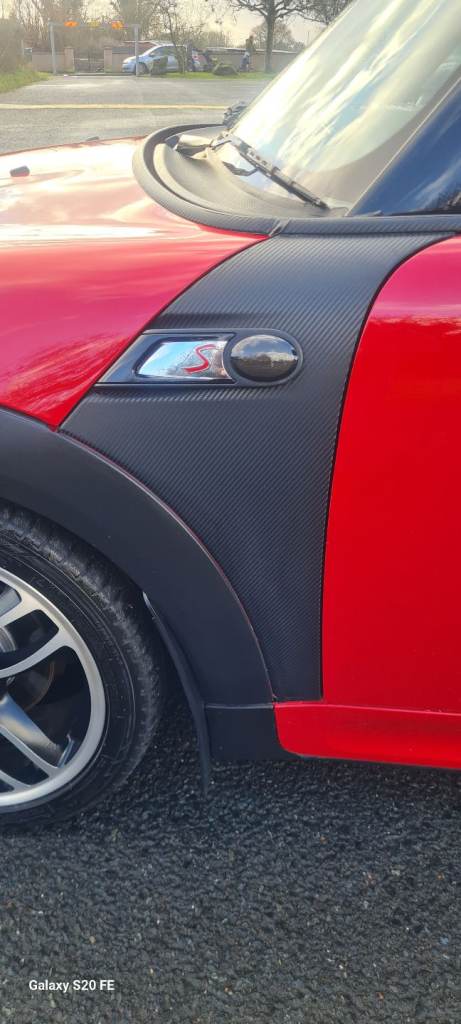Has a few JCW bits and bobs, Alloys R107 Gp1 copies, Areo side skirts, Union Jack tail lights. Steering wheel and hand brake carbon lever.
