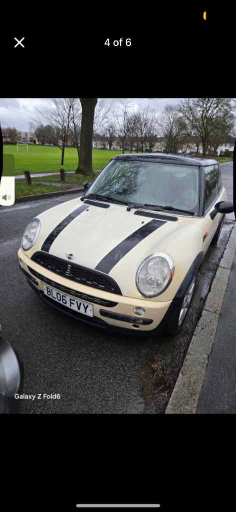 Posting for under a monthMini Cooper white 3 door 2006 cheap car stars and drives well