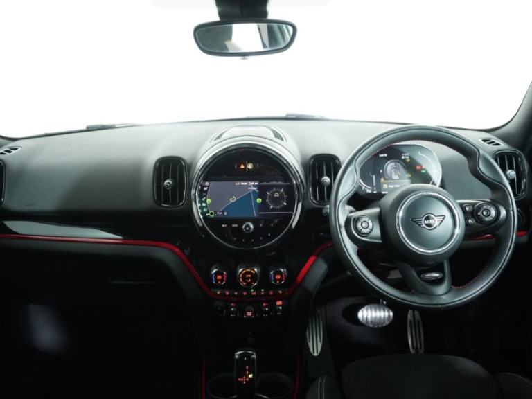 White Silver, Carbon Black Dinamica & Cloth Combination Upholstery, MINI Navigation, Front Heated JCW Sport Seats, Rear Parking Sensors, Cruise Control, MINI Driving Modes, Black Roof and Mirror Caps, Aluminium Roof Rails, Darkened Rear Glass, Digital Cockpit