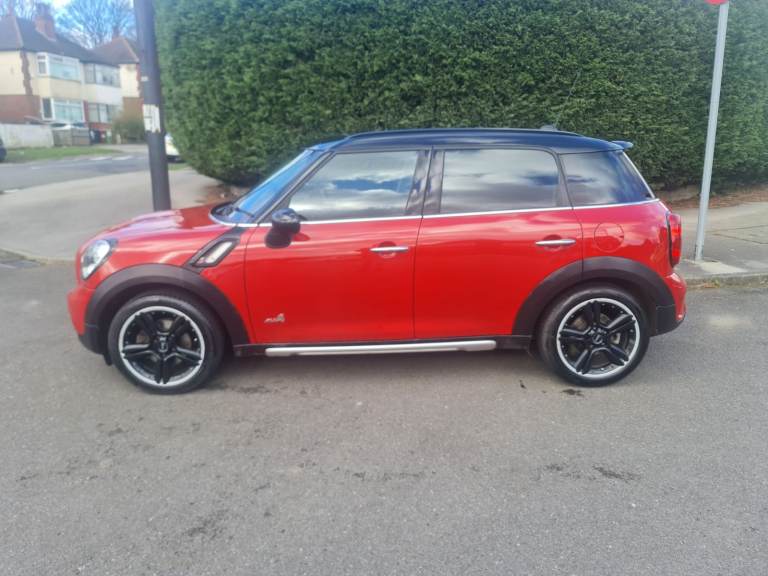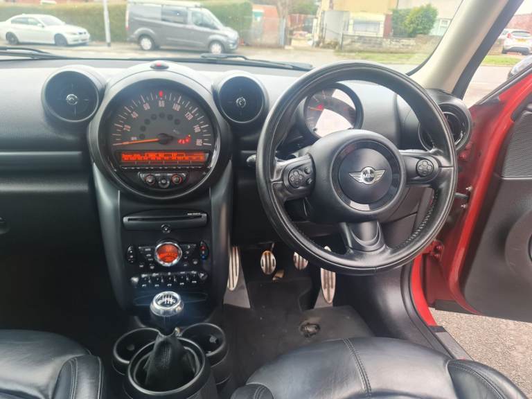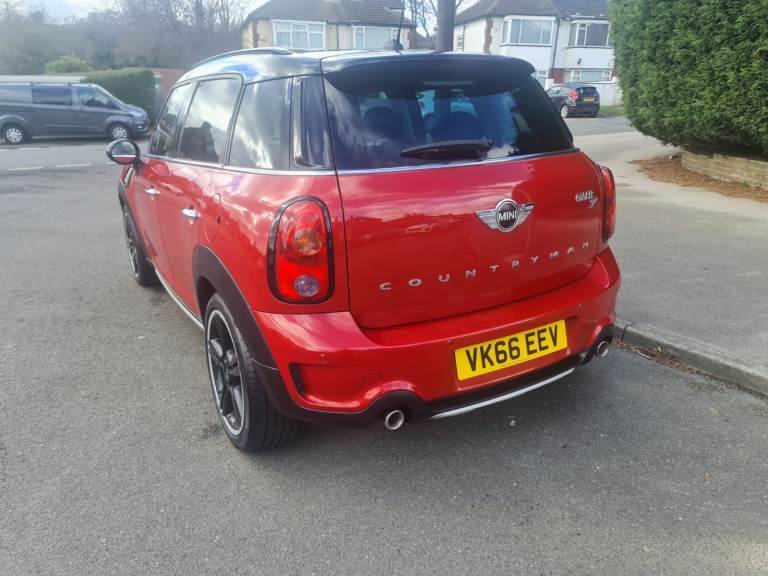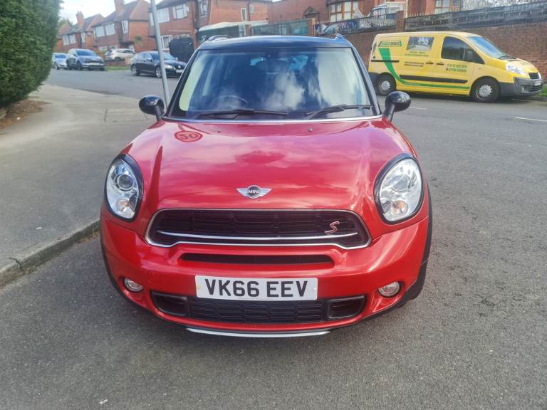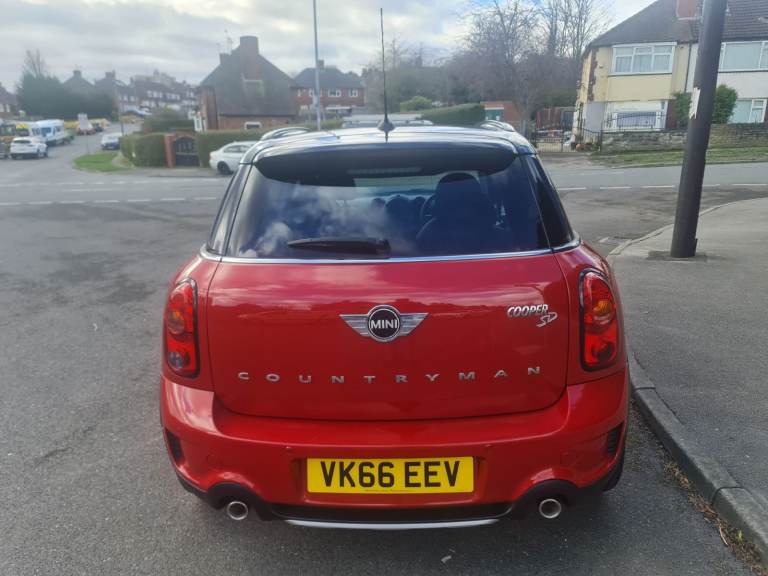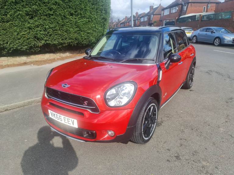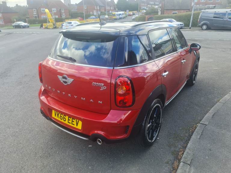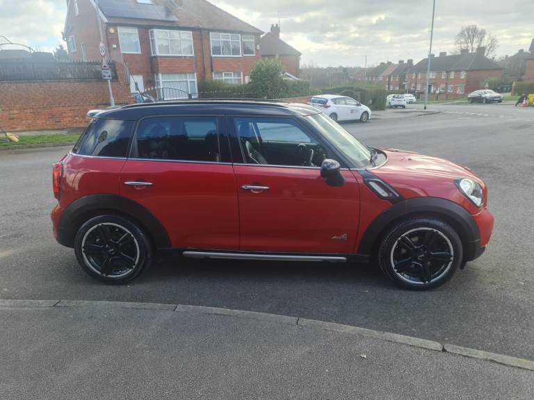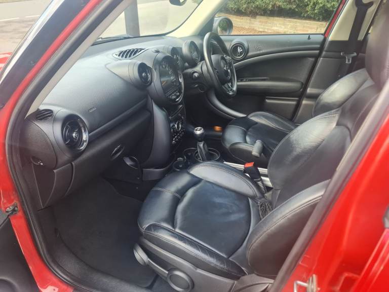 MINI Countryman Cooper 2.0 SD All4 5 Door Manual 2016 Blazing Red metallic with studded split rim with gloss black face and a silver lip. 3 Owners. 2 Keys. 110,000 miles with printout of full service history with last service done at 102,615 miles at a cost of £350.00 on 23 April 2025. Rear Parking Sensors. Twin Exhaust. Electric Panoramic Roof with blinds and many opening options. Roof Rails. Spotless black leather heated seats. Full Chili Pack. Sports and Cruise Control Mode – £Low Road Tax – MOT 26 / August / 2026 - Chili Pack Has 7 Interior Light Options - Multi Functional Steering Wheel with Bluetooth Phone Connectivity, DAB Radio, USB / AUX - Front Fog Lights With Auto Lights & Wipers - Full Electric Windows Which Can Be Controlled With Key Transponder - Digital Climate Control Air Conditioning - ISOFIX Seats - Immobiliser - Clean alloy Wheels With An Excellent Set Of Tyres - Airbags - Cup Holders. Immaculate inside and out as has been professionally valeted and stage 1 polish. Top Spec Car with Lots of Added Extras. Drives with no knocks or bangs. A very nice example of German Engineering, Pulls like a train and fly’s like a plane. Any inspections welcome. May part exchange.