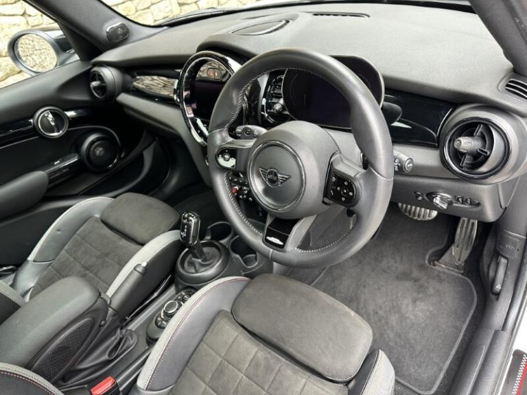 Here at Lloyd MINI South Lakes, we are delighted to welcome this one previous owner MINI HATCHBACK 2.0 Cooper S Sport Premium Plus 5dr Auto finished in Nanuq White Metallic with a Dinamica Leather John Cooper Works Sport upholstery. It comes with a full service history and 12 months warranty, thanks to the MINI Approved used Programme. During preparation, this MINI has been meticulously cared for, receiving 4 new tyres, alongside undergoing our comprehensive AUC Vehicle Check & Road Test for enhanced peace of mind. Powered by a 2.0l petrol engine producing a powerful 176bhp with 280nm of torque paired with a 7 speed automatic gearbox. The MINI Cooper S Sport strikes the perfect balance between iconic MINI style but with modern refitment, compacted in size yet big in presence, Enhanced with the Sport pack it sits on stylishly on 18'' Course Spoke 2-tone alloys, adding a sporty drive to this MINI Cooper S Sport. The front of the MINI comes with bright LED Headlights which ensure excellent visibility on every road you travel. The central display screen offers Apple CarPlay, letting you access your favourite music, messages, and calls through the Harman Kardon sound system. Cruise Control is easily managed via the leather multifunction steering wheel, which makes longer drives effortless. When it's time to park, the Rear Parking Sensors with Reversing Camera make tight spots easier to navigate. Whether you're after a thrilling drive or a more relaxed drive, simply select your preferred style with the MINI Driving Modes feature. Choose Sport Mode for a more sporty experience or Green Mode for efficiency and comfort tailor every journey to match your mood. Finally this MINI also comes with the desirable Panoramic Glass Sunroof, flooding the cabin with natural light. Visit South Lakes MINI today to test drive this stunning example of the Nanuq White Metallic MINI Cooper S Sport and experience its unique blend of character, comfort, and capability.