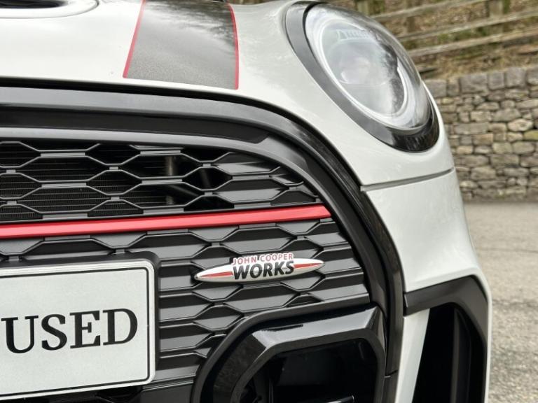 Here at Lloyd MINI South Lakes, we are delighted to welcome this freshly serviced MINI John Cooper Works finished in White Silver Metallic with Dinamica Leather John Cooper Works Sport Seats upholstery. It comes with a Full Service History and 12 months warranty. During the preparation process we have serviced this car and it also comes with 2 new tyres! Powered by a 2.0l petrol engine producing a powerful 228bhp with 320nm of torque paired with a 6 speed automatic gearbox. The MINI JCW strikes the perfect balance between iconic MINI style but with modern sporty refitment, compacted in size yet big in presence, Enhanced stylishly on 17'' JCW Alloys, Adaptive Suspension with a Red Roof and Mirror Caps, with sporty front and back bumpers adding a sporty design to this MINI JCW. The face of this JCW comes with bright LED Headlights which ensure excellent visibility on every road you travel. Step Inside with Comfort Access where a sporty interior matches the exterior, Piano Black Trims running throughout with Ambient Lighting setting an ambient atmosphere. Sit down and get comfortable on the JCW Heated Sport Seats with extra comfort from the front armrest and the upfront Climate Controls, creating a relaxing atmosphere on every journey. Stay connected on the go with and integrate your phone through Apple Carplay integration, letting you access your favourite music, messages, and calls. Whether you're after a thrilling drive or a more relaxed drive, simply select your preferred style with the MINI Driving Modes feature. Choose Sport Mode for a more sporty experience or Green Mode for efficiency and comfort tailor every journey to match your mood. Visit South Lakes MINI today to test drive this White Silver Metallic MINI John Cooper Works and experience its unique blend of character, comfort, and capability.