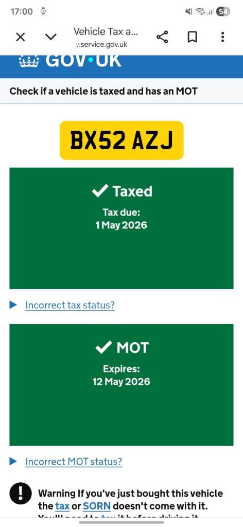 This vehicle has not been reported stolen, scrapped, exported or flagged as unroadworthy.