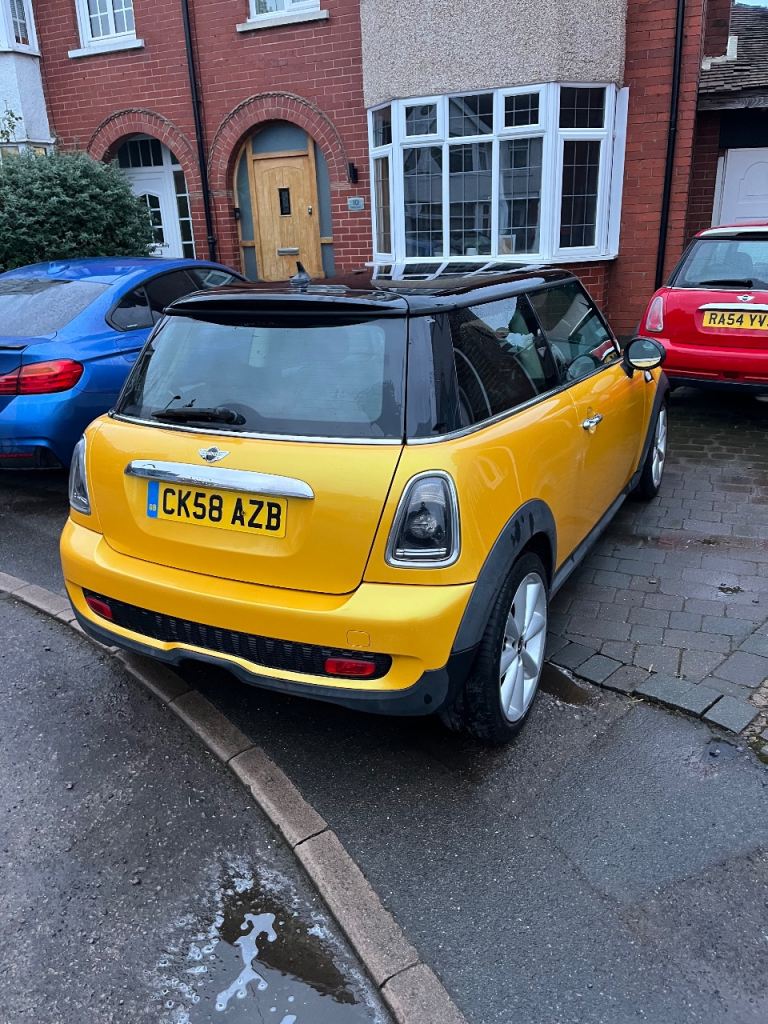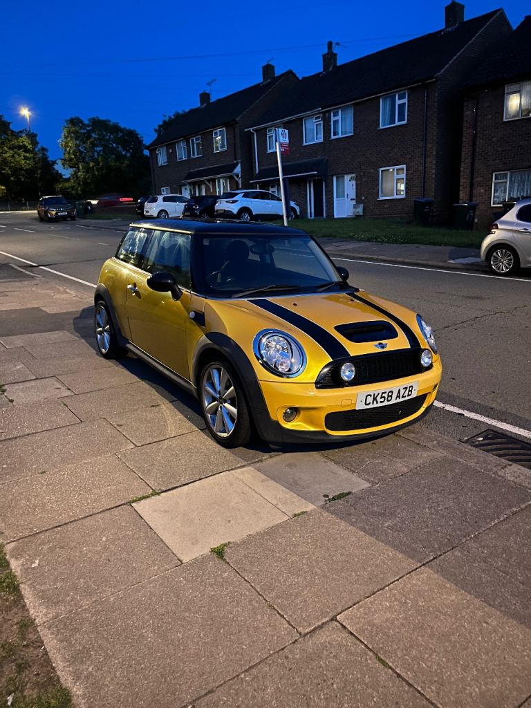 Mini hatchback, finished in a lovely liquid gold colour. 2008, 6 speed manual with a 3 door body shape. It has stop/start and it also has half leather seating. Standard speakers sound good. Car runs and drives perfectly. Welcome to test drives. It has just under 98,000 miles on it and is still being driven till it is sold. Very good on fuel and great mpg (Petrol). Very practical for daytime driving and getting around towns/cities. Lots of small details all over the car. Overall a fantastic car haven’t seen another one like it. Ideal first car, or just a get around for day to day driving, very easy and comfortable to drive.