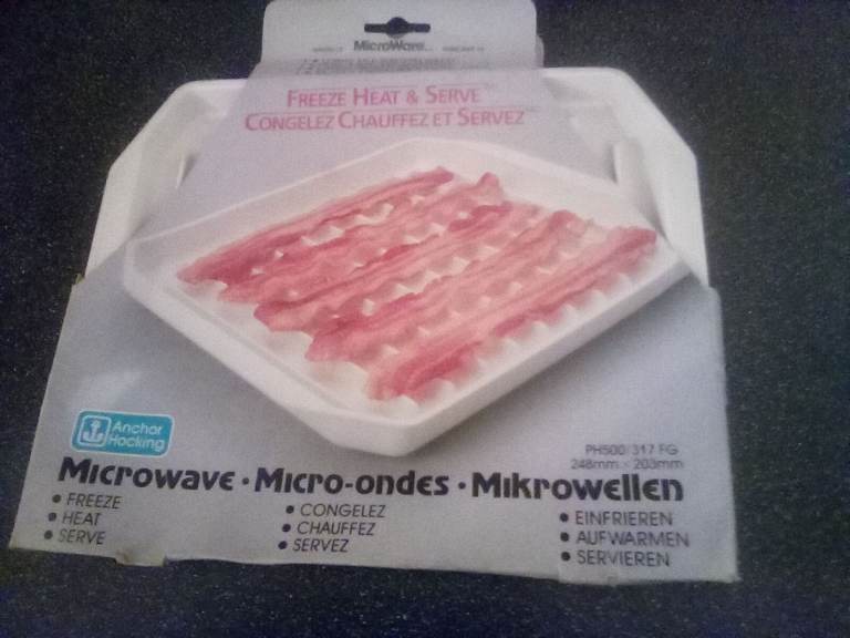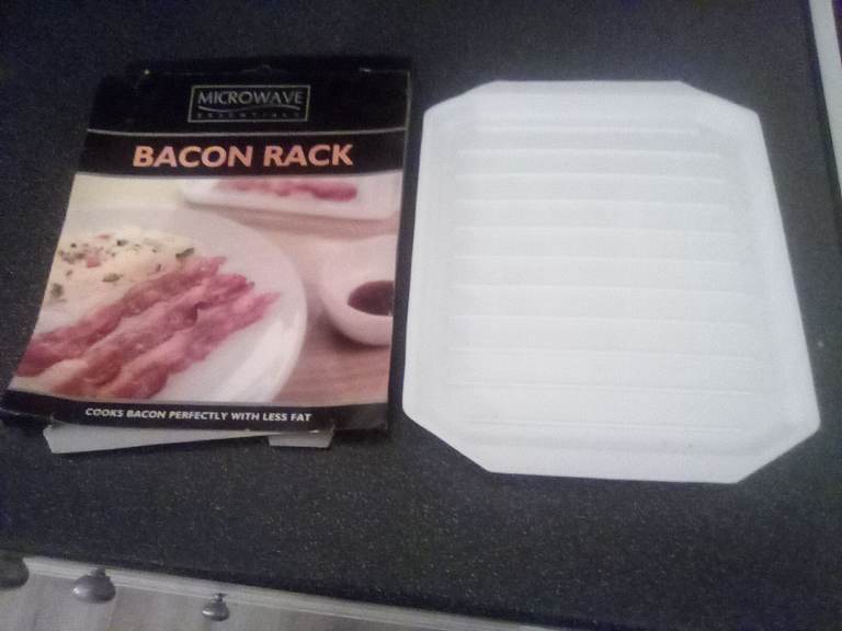 * Microwave - Freeze, heat and serve long life bacon rack. Ideal quick meals, , storage and reheating. Can be used in microwave, , gas or electric ovens. Dishwasher safe. £2.