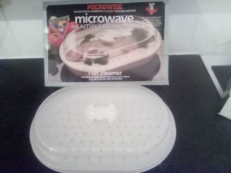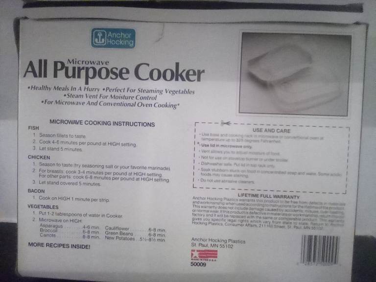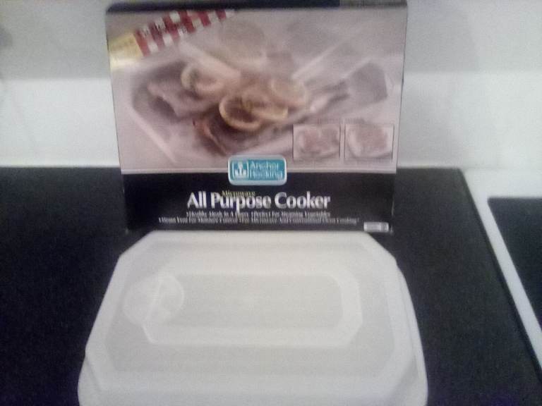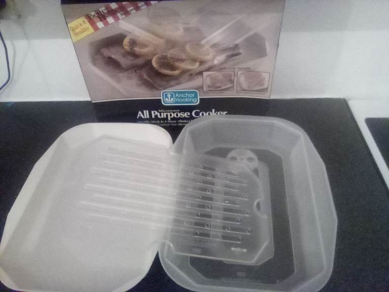 * Microwave All Purpose Cooker. Perfect for healthy meals in a hurry,steaming vegetables, etc. Steam vent for moisture control. For microwave and conventional oven cooking. Dishwasher safe. £6.