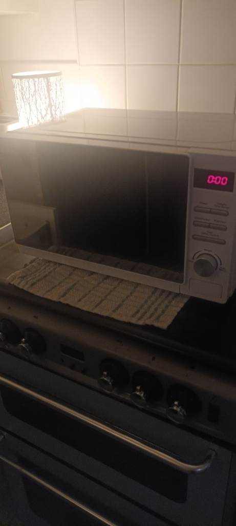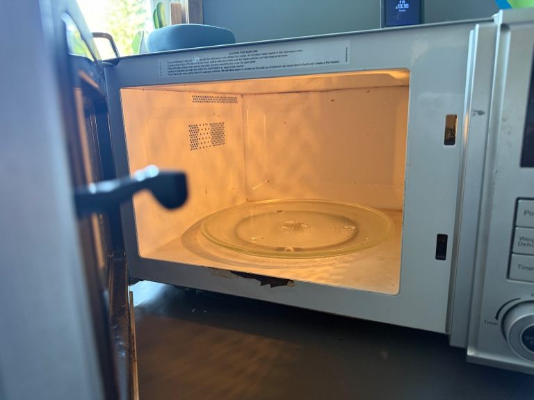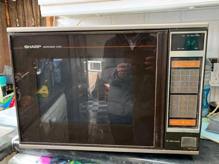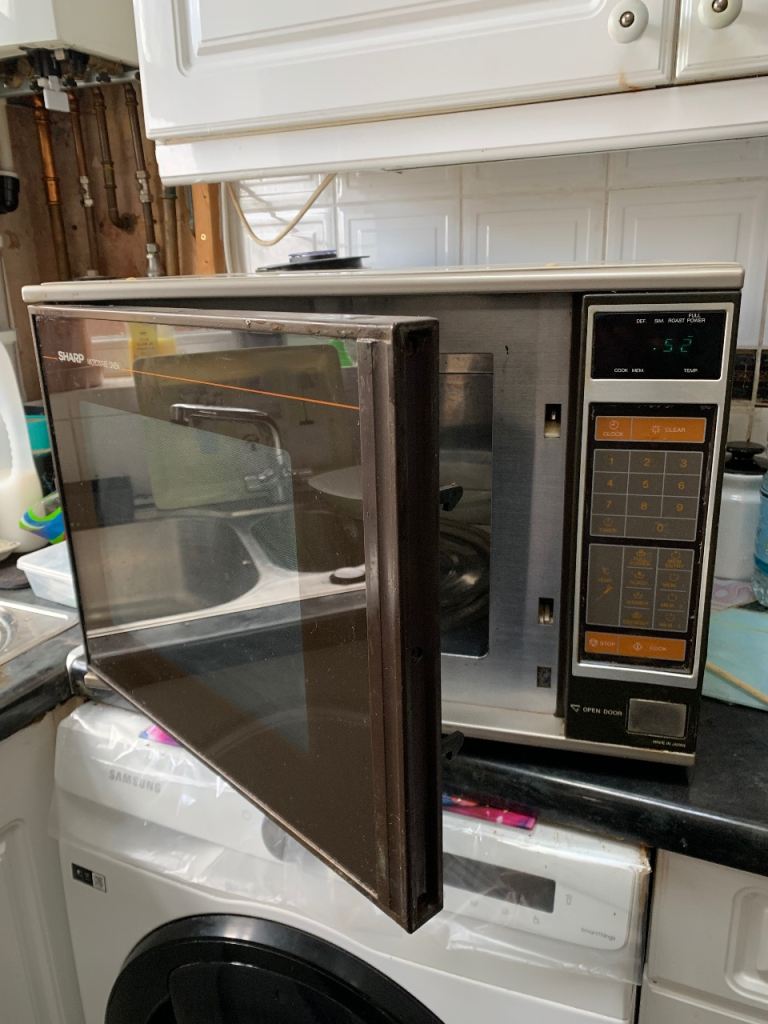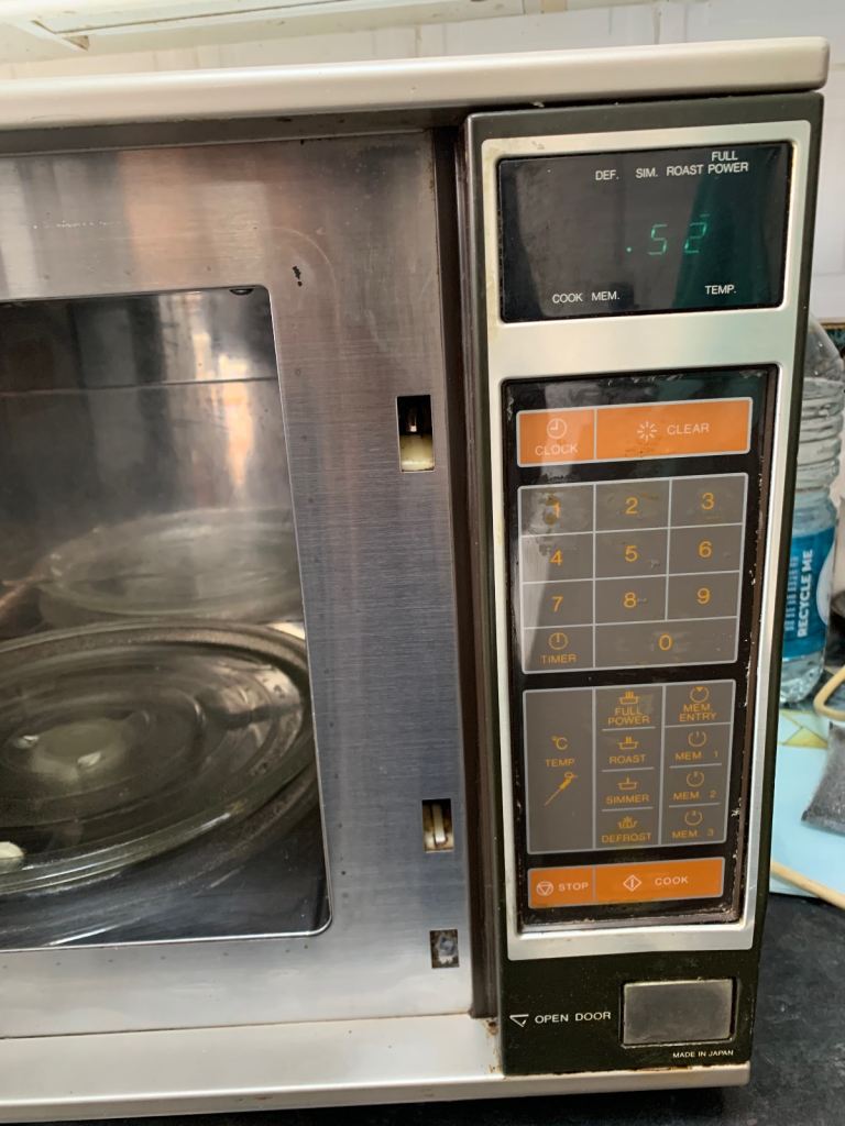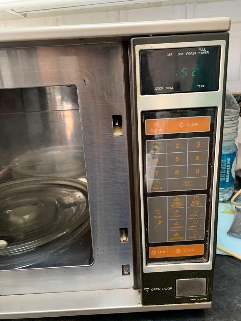 A used sharp microwave. It is good condition. It’s in good working condition. It’s big size. Made in Japan. Very reliable
