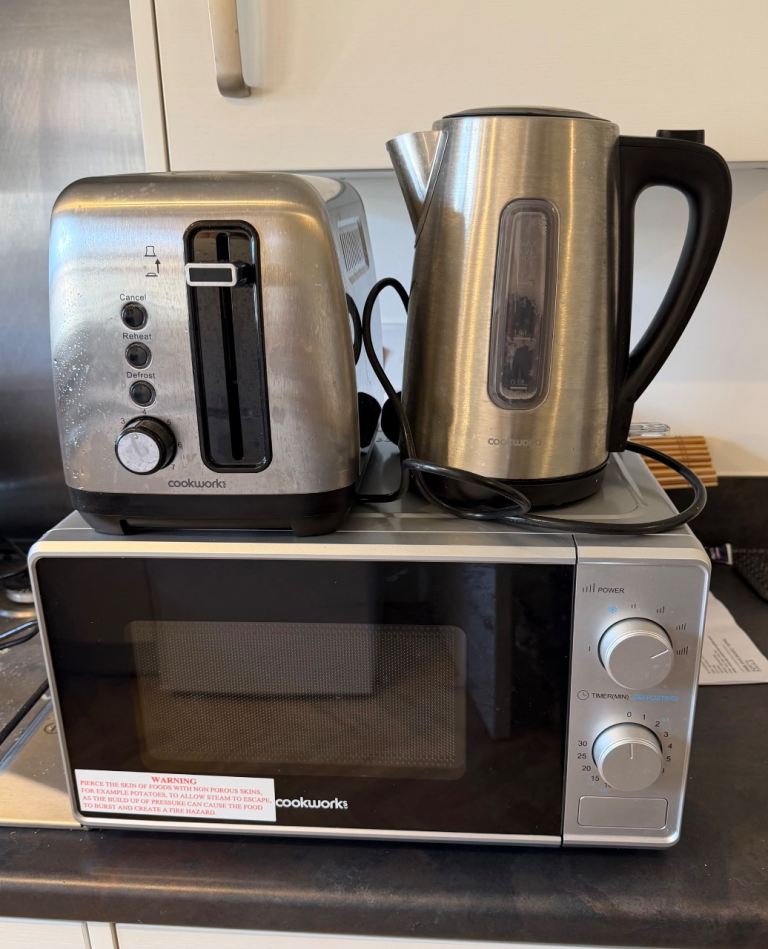 Red Russell Hobbs microwave, kettle and mesh unit selling on behalf of someone else. Kilmarnock pickup only
