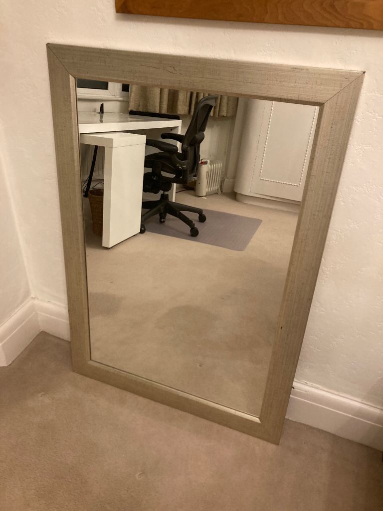 This is a large wall mirror in silver, vintage look frame, fittings included, vertical position, excellent condition 72cm by 102cm