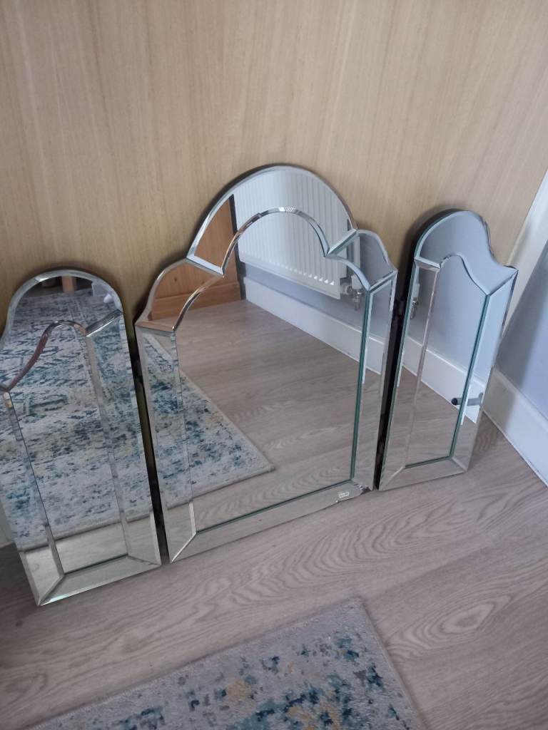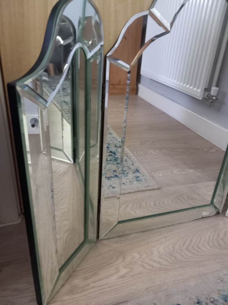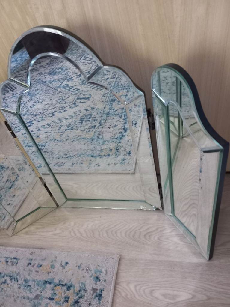 Venetian 3 way dressing table mirror, heavy mirror, mirror is like a wave approx 62 cm h at the highest, 51 cm h, 79 cm w,