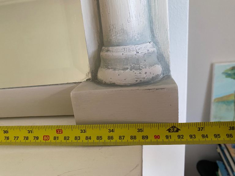 Carved wood , beveled, antique, vintage. Great condition. Pale grey. Hard wood.