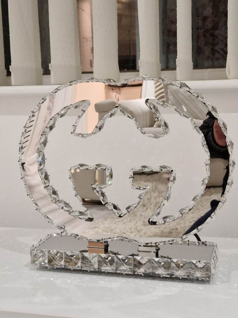 Lovely arched mirror with a frosted glass shelf, perfect for a bathroom.