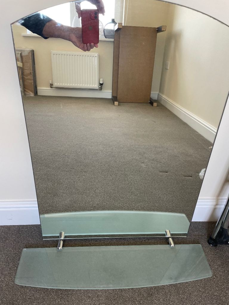 Posting for 9+ monthsArched Bathroom Mirror with Shelf – Good Condition