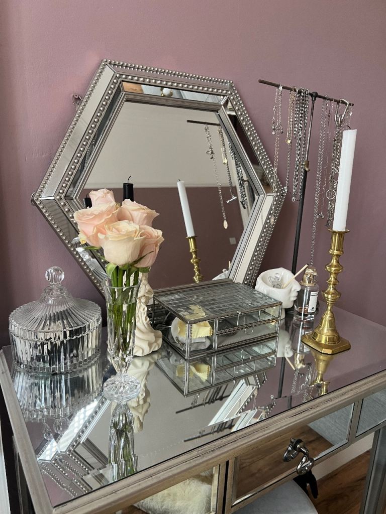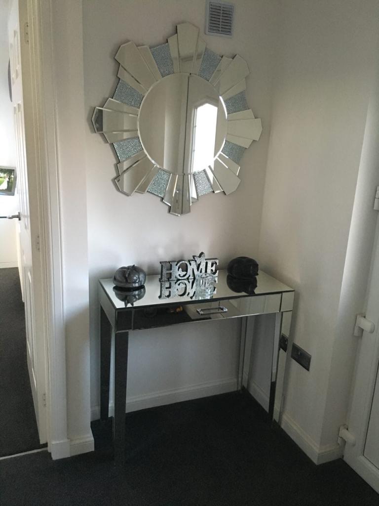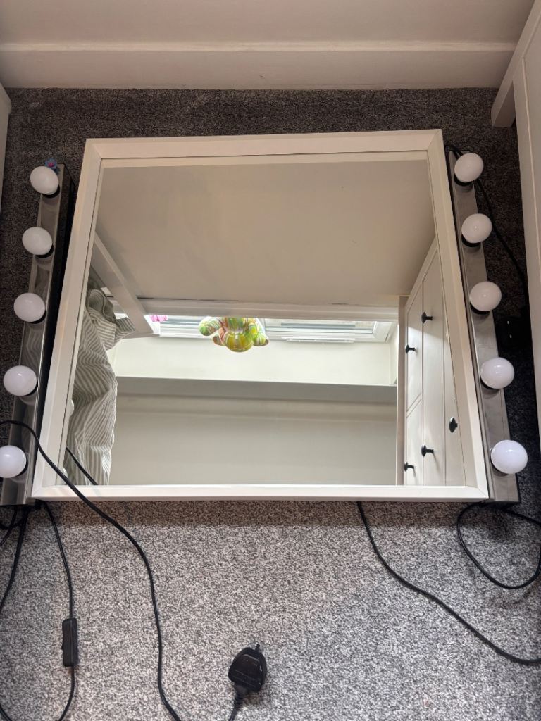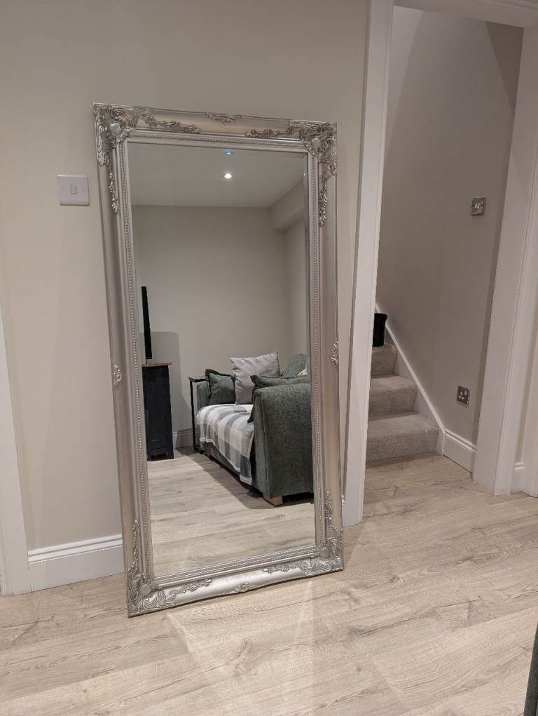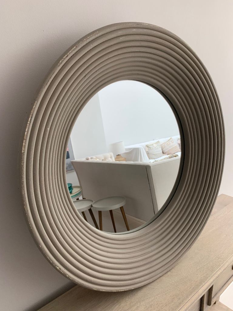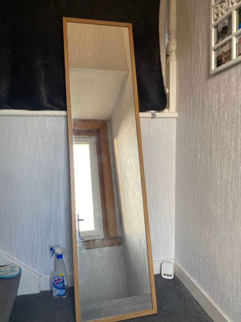 A heavy mirror - on the back are fixings to for it to hang horizontally or vertically.