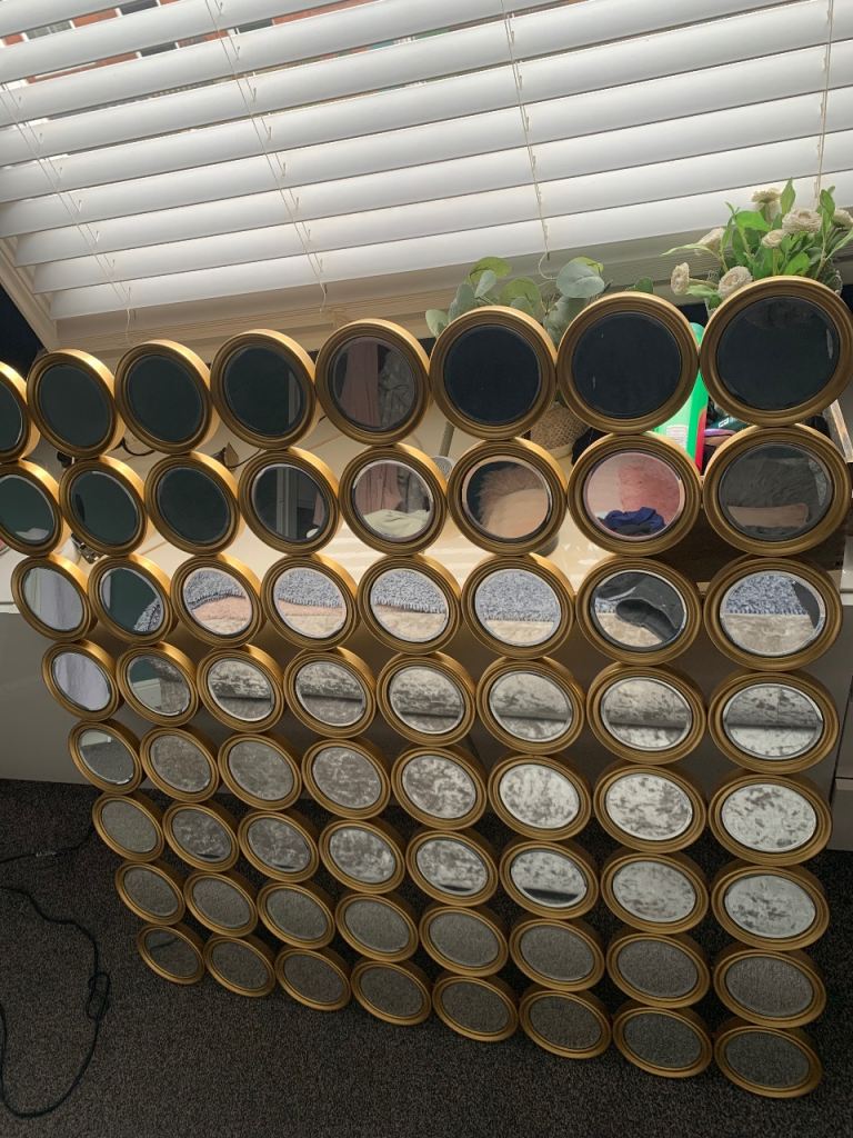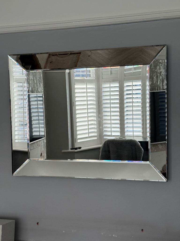 Lovely bevelled mirror, easy hanging on solid hooks, this is heavy mirror and will need to be hung on screws in wall.