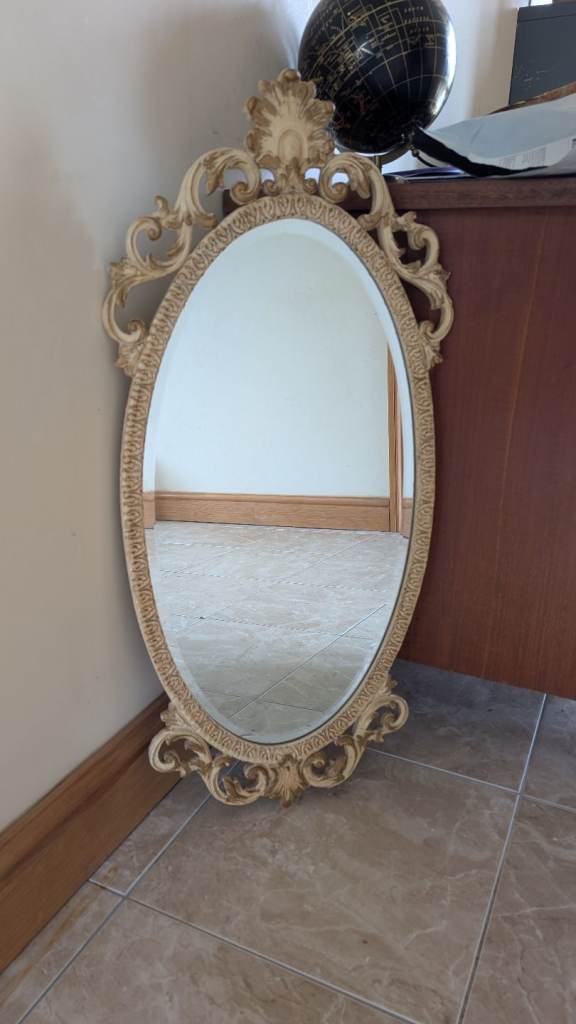 Gorgeous decorative metal mirror in cream with roses and birds. Great condition, only change of decor forces sale. Collection cowplain waterlooville.