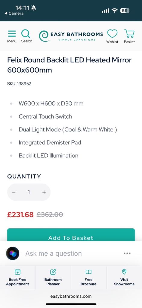 Felix Round Backlit LED Heated Mirror 600x600mm