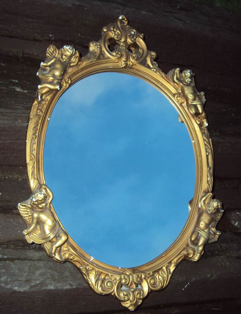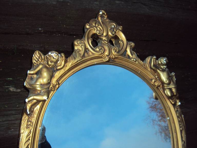 FREE !! VTG GILT WOOD PLASTER ROCOCCO BAROQUE ANTIQUE STYLE CHERUBS / PUTTI OVAL MIRROR