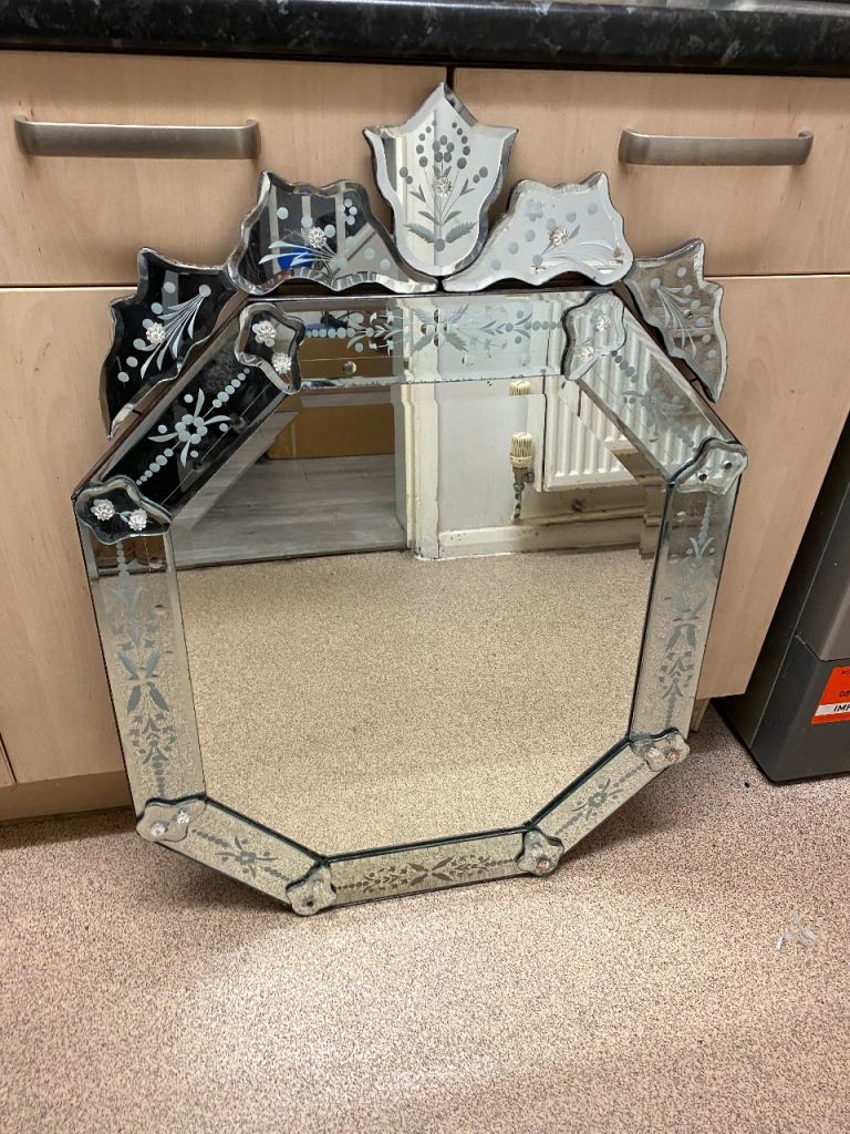 Ornate patterned glass mirror good condition for cash and collection only