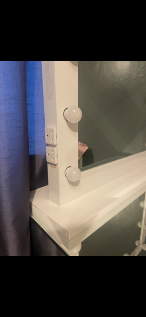 Bluetooth Hollywood mirror with dimmable lights, usb and plug sockets