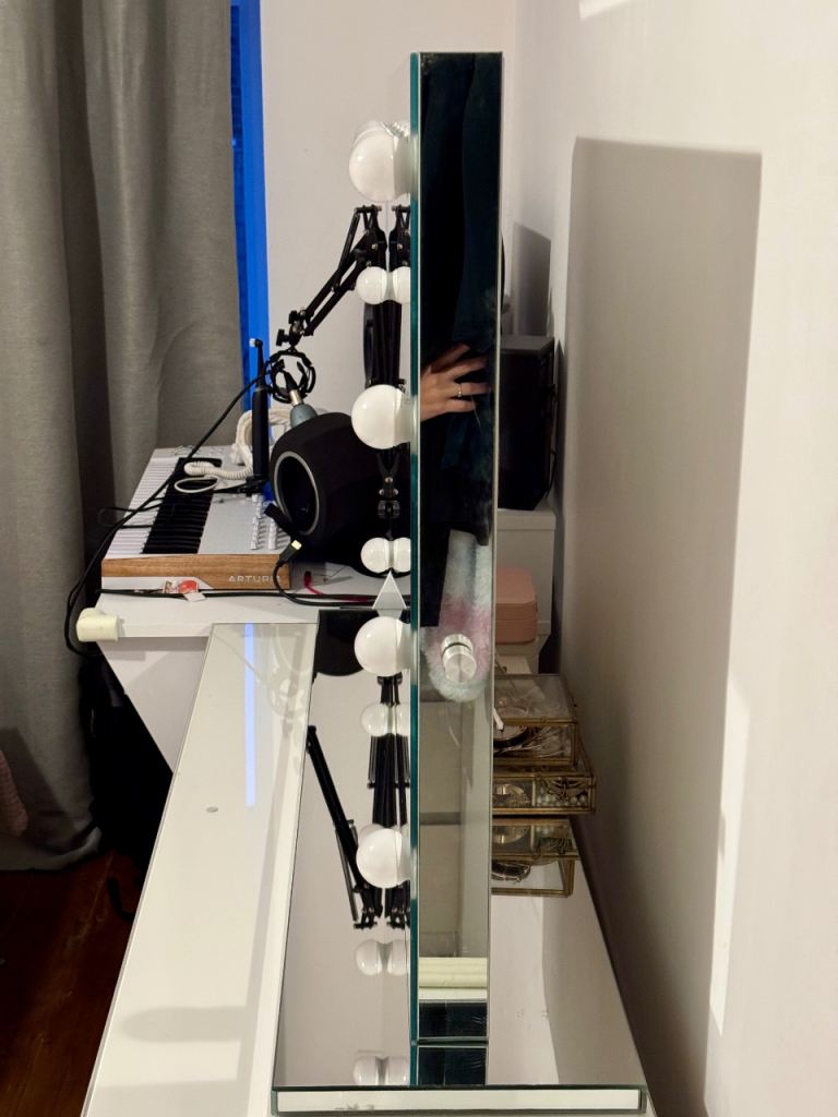 Posting for 6+ yearsHollywood mirror + vanity table. Dimmable lights