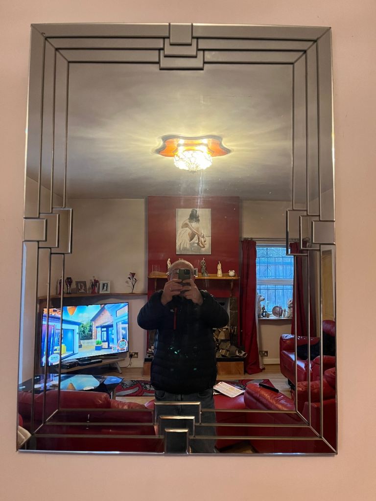 Large art deco style mirror very collectible cost a lot of money like new - as it looks in the picture it is 80cm wide and 112cm high