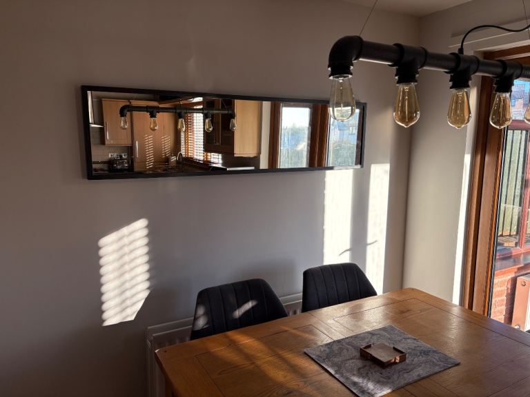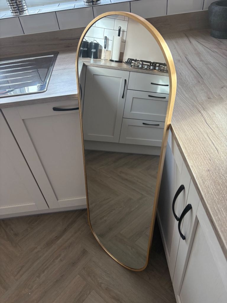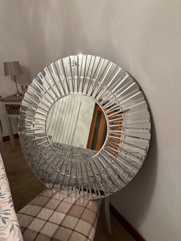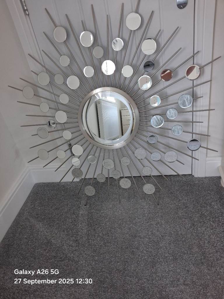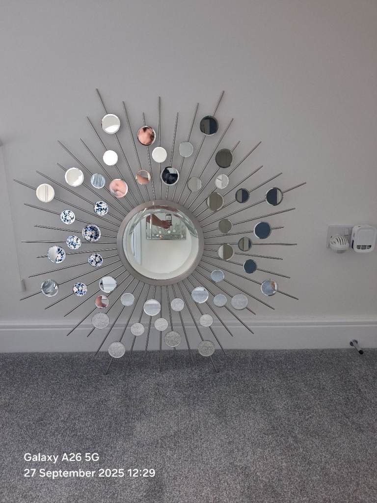 Large wall mirror spokes with small round mirrors on and large mirror in the middle