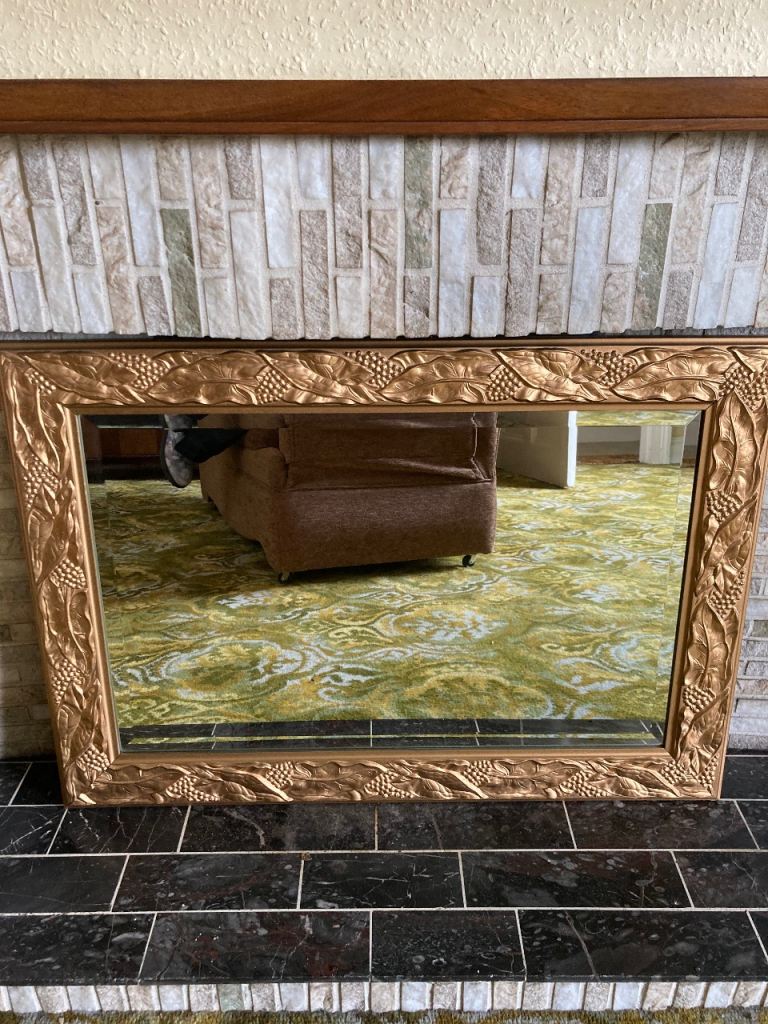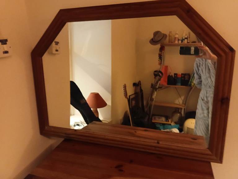 Overmantle decorative, heavy wooden , vintage mirror.
