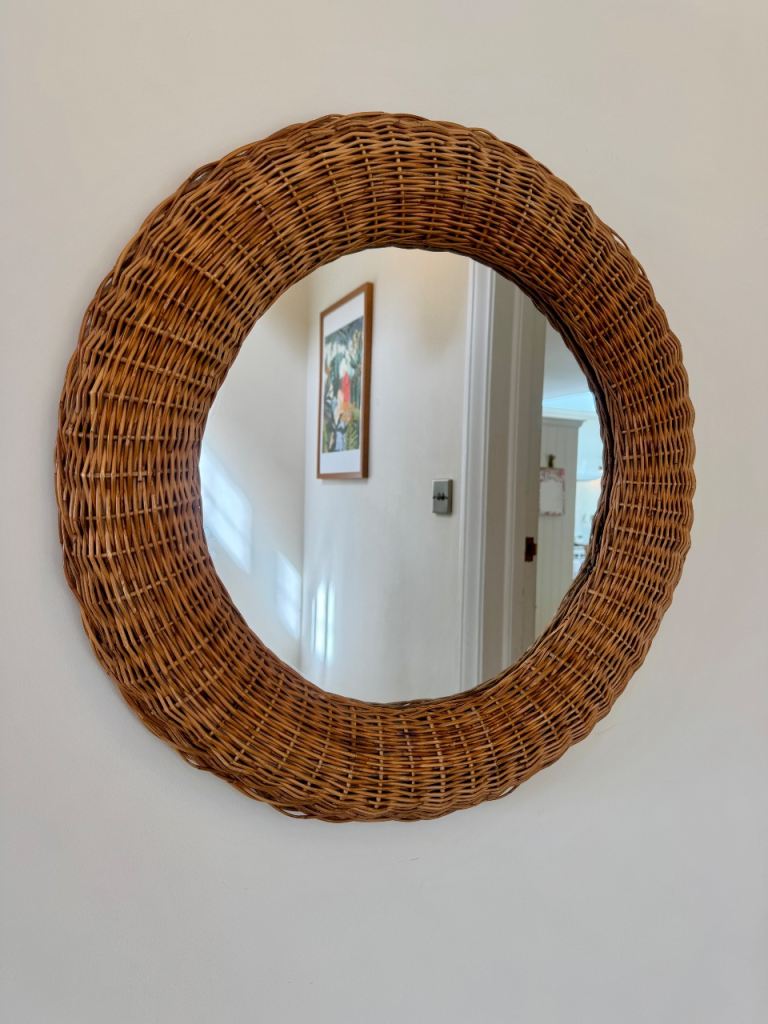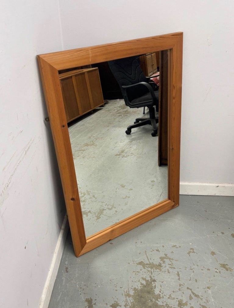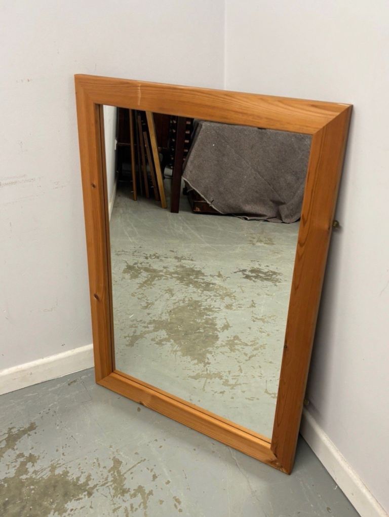 Large rectangular wall mirror with a solid pine frame finished in a warm honey tone.