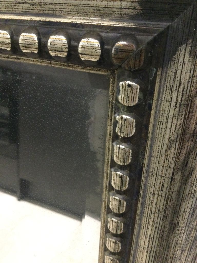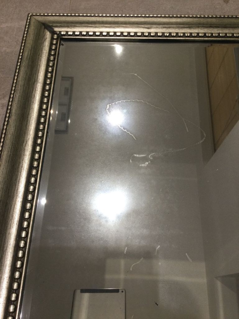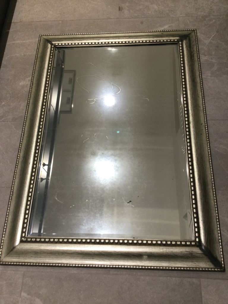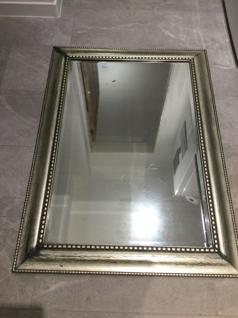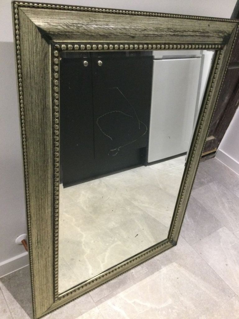 It is a vintage mirror in a pre loved condition. The glass shows purposeful wear and the frame is in a sculptural gold finish. It has fixings that can be mounted horizontally or vertically.