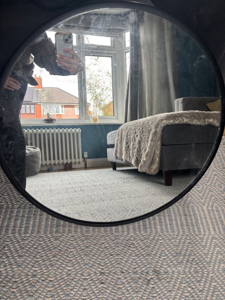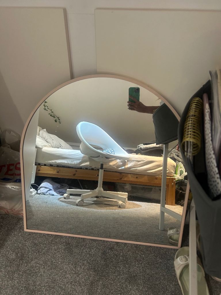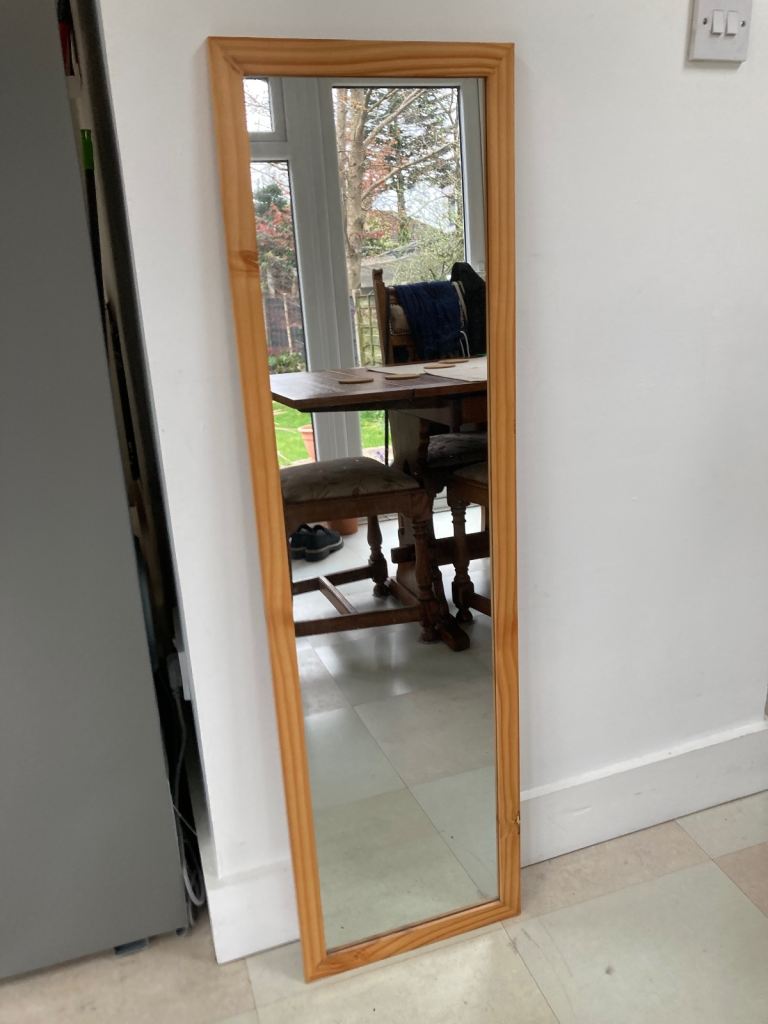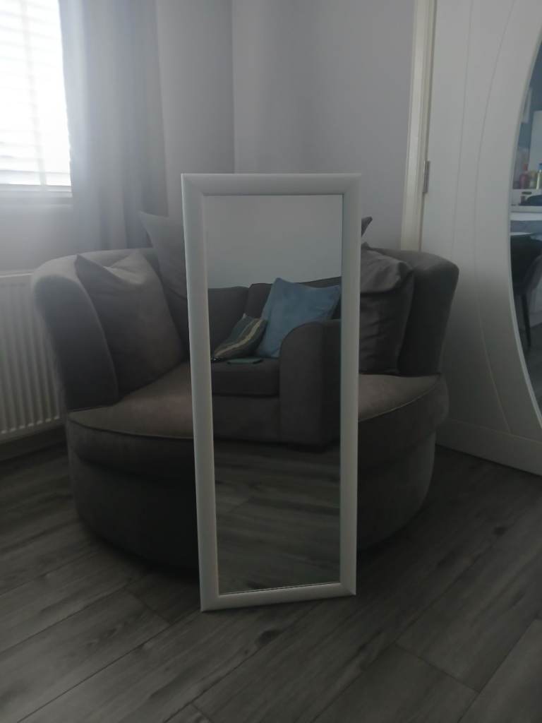 Selling due to downsizing. Stunning statement mirror with bevelled edge glass. Can be hung both ways. 140 cm x 80 cm. Grab a bargain at only £55.