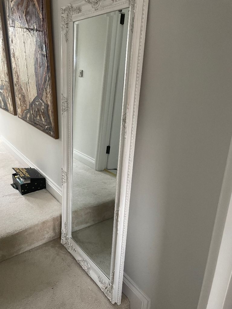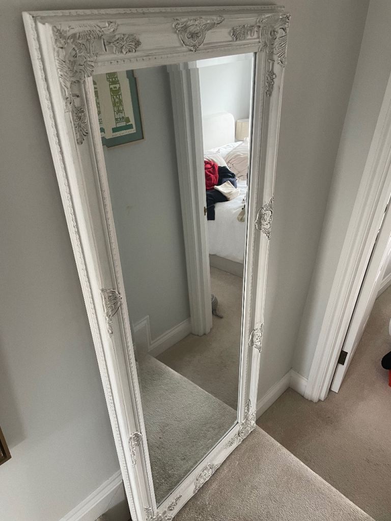 Large mirror with white wooden frame. Minimal wear. Width circa 70cm & length circa 170cm. Open to sensible offers. Collection only based in Southfields, SW London.