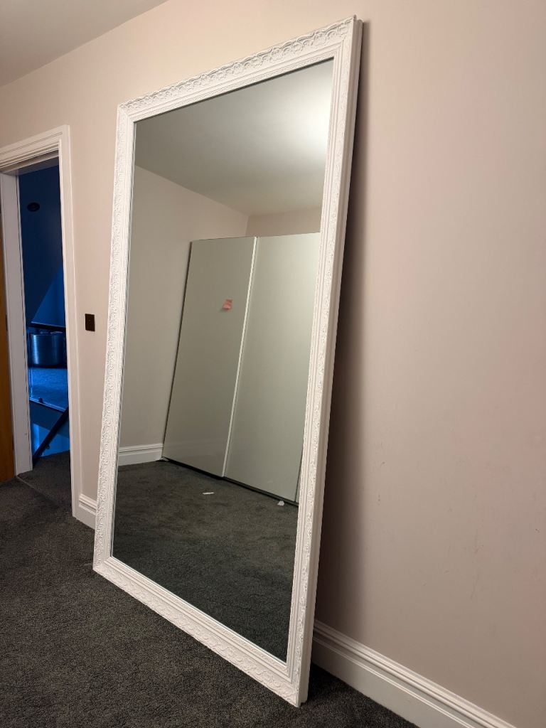 Large White Ornate Full-Length Mirror – Excellent Condition