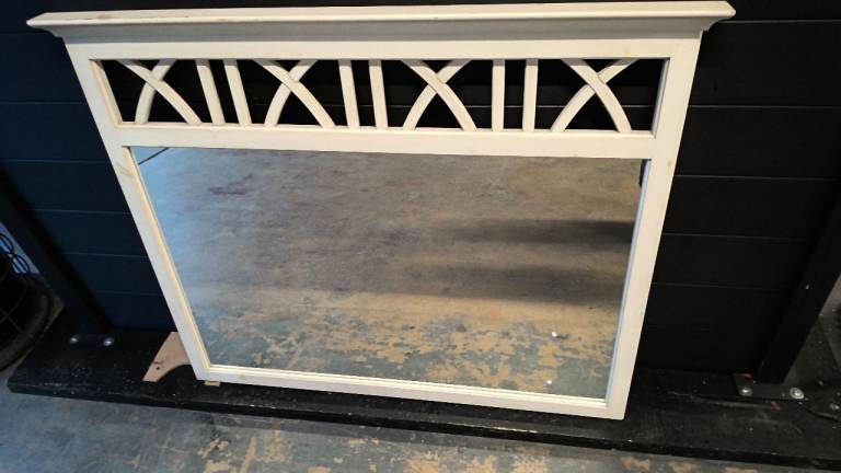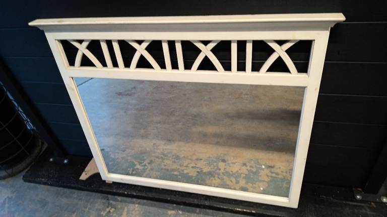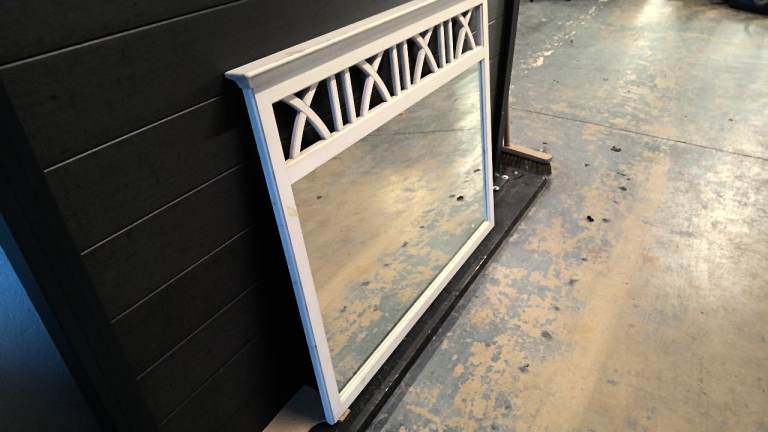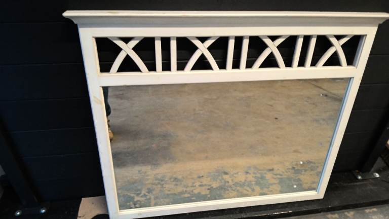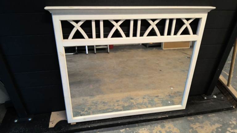 large wood mirror finished in white