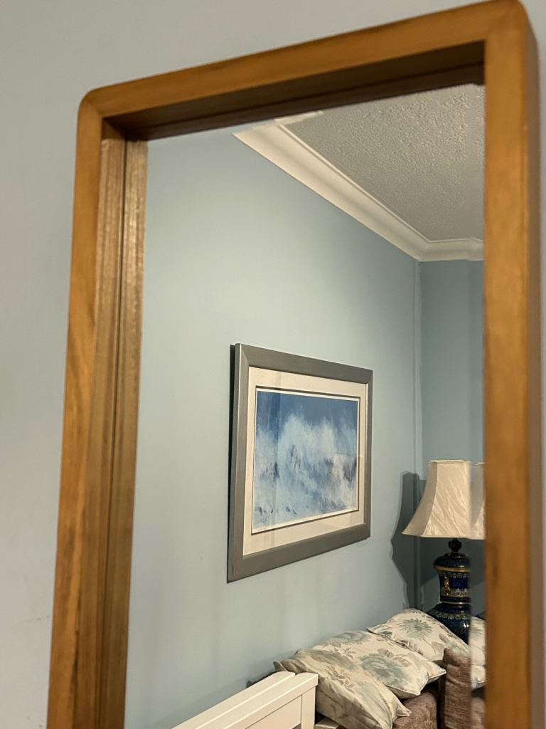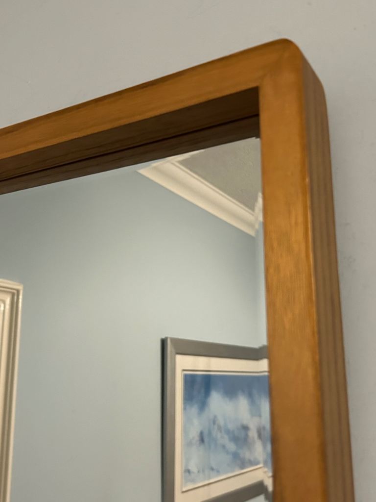 Light Wooden Framed Bevelled Mirror H37in/94cm W13in/30cm Good condition NO OFFERS D344