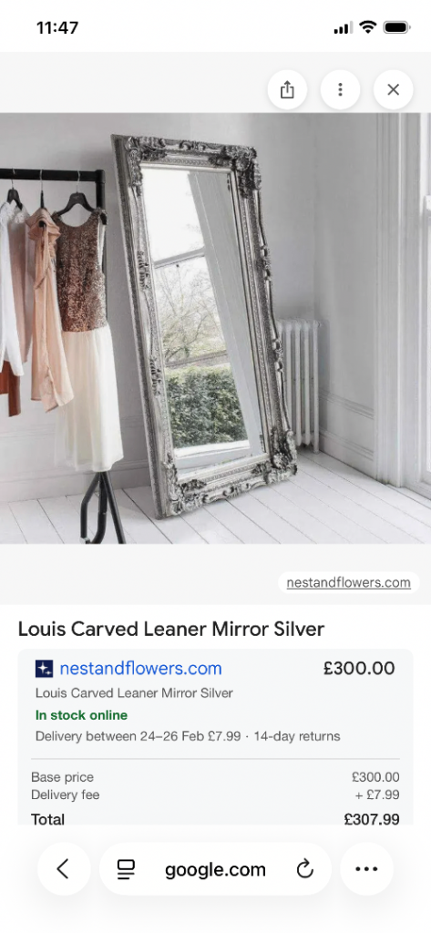 Posting for under a monthLouis Carved Leaner Mirror Silver