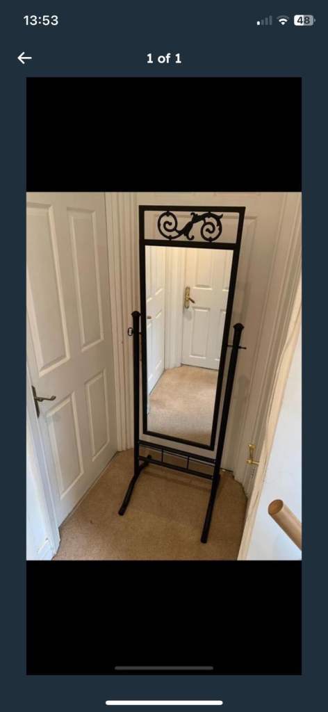 Metal standing mirror.