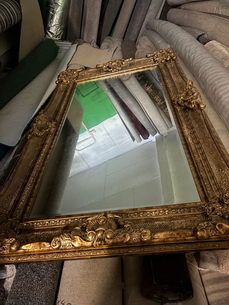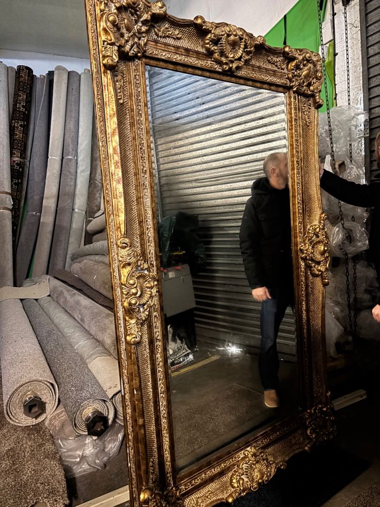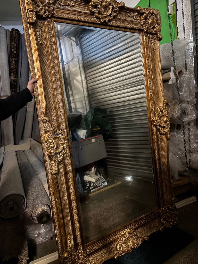 Absolutely beautiful mirror this is a statement mirror it’s massive and heavy could be hung up or floor standing