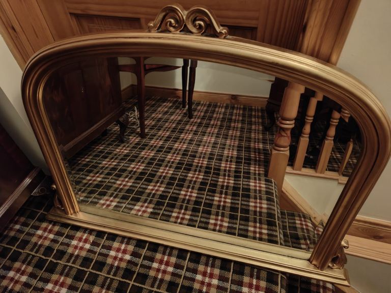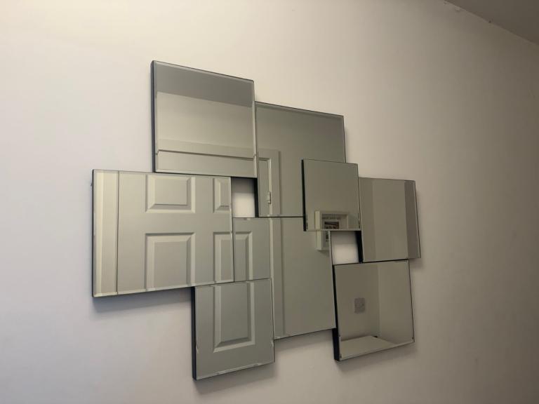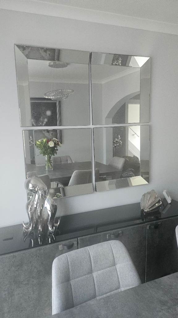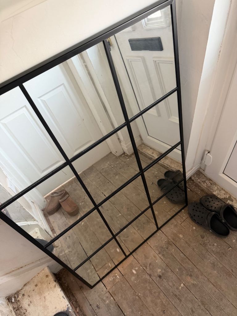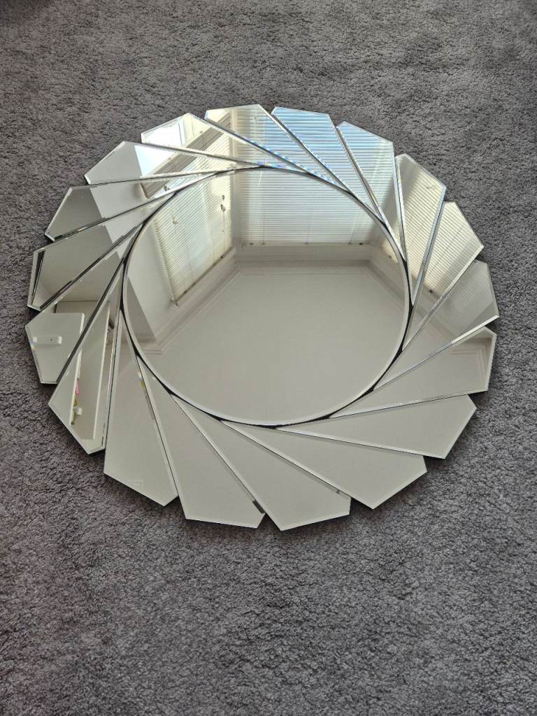 Lovely All Glass Triple Edge Bevelled Wall Mirror. In very good condition. Portrait Landscape fitting.