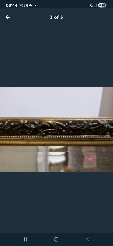 Mirror the back as the strong string on it and the third pic is the pattern on the frame in very good condition length 28 inch width 18.5 inch