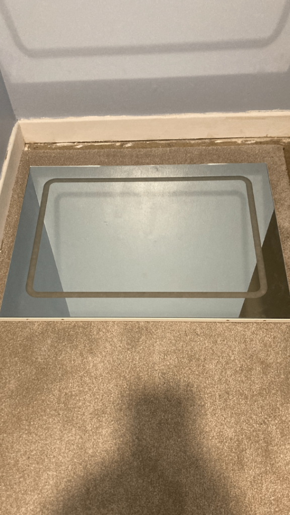 as shown but not noticeable at all when on wall . 60cm x90cm. Collection only