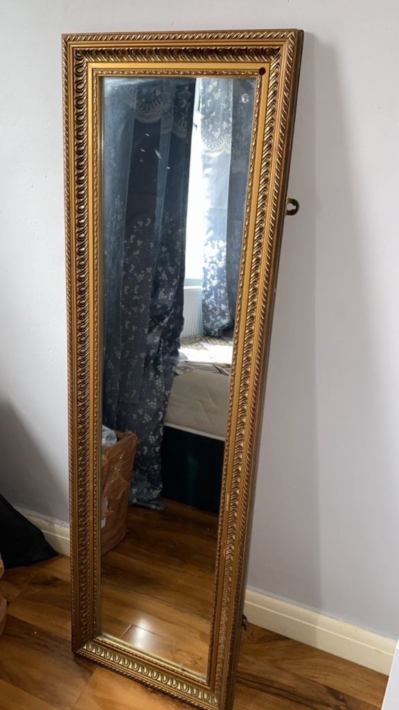 Add a touch of elegance to your home with this stunning full-length wall mirror, featuring a classic gold-toned ornate frame. Measuring 40x130cm, its sleek, tall design makes it perfect for a bedroom, hallway, or dressing area. The mirror is in great condition and works perfectly with no issues to the glass or the frame. It’s a solid, stylish piece that’s ready to hang and instantly brighten up any room!