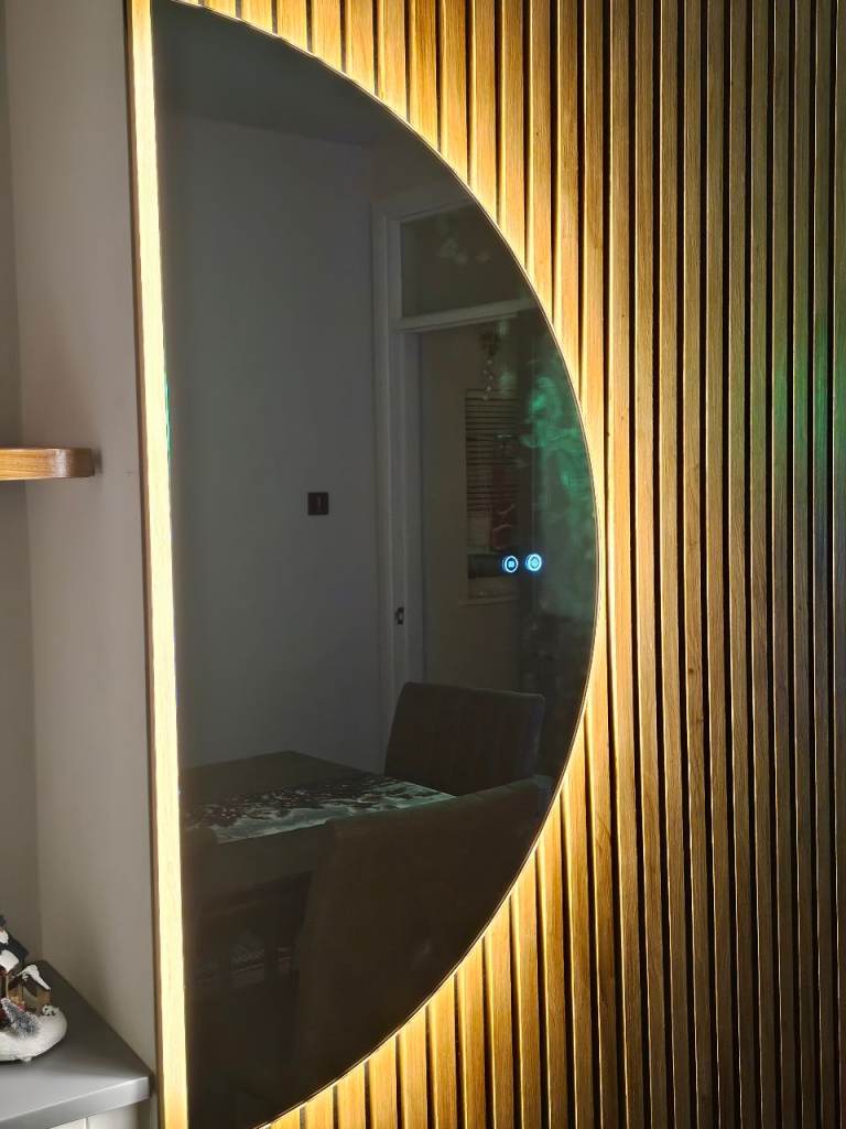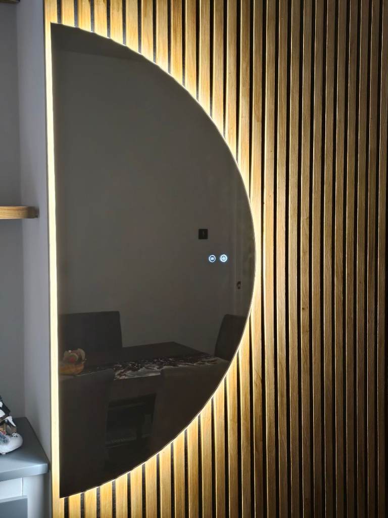 110×550mm Half Moon Mirror-Anti-Fog Bathroom Mirror with LED Lights with 3 Color Dimmable, Backlit & Stepless Dimming Smart Vanity Mirrors for Small Bathroom, Memory ZT