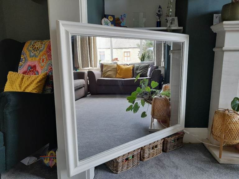 Mirror with a painted white frame. 112x88cm.
