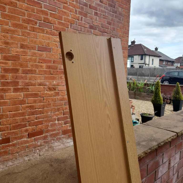 ▪ This is very heavy, with it being from a wardrobe door. So the mirror is attached to a door, if that makes sense