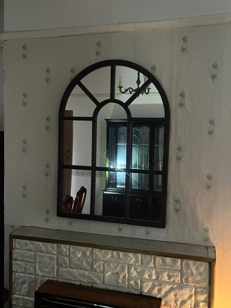 2 wooden mirrors as pictured. These are hung on chimney breasts.