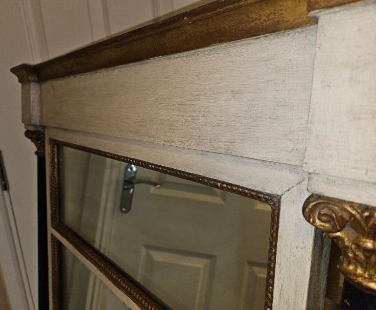 There are 2 rectangular mirrors measuring (69cm x 49cm) & (49cm x 17cm) which are generously sized, making it both functional and decorative, while the gilt flourishes along the edges elevate its luxurious appeal.