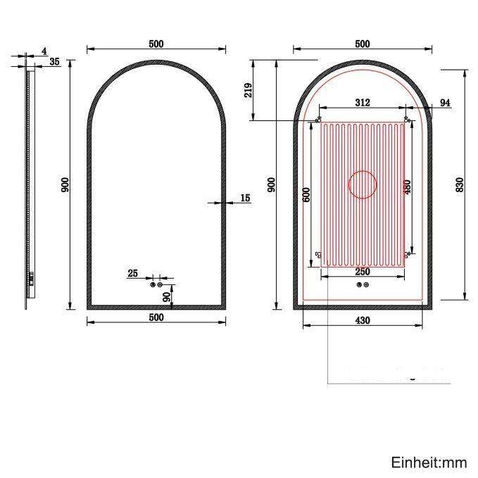 New Arched 900 x 500mm Backlit LED Mirror with Demister Pad & Shaver Socket