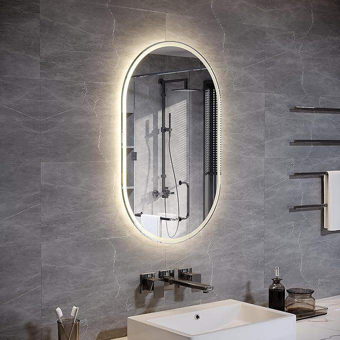 New Oval LED Bathroom Mirror with Anti-Fog, Touch Sensor & Shaver Socket 800 x 500mm